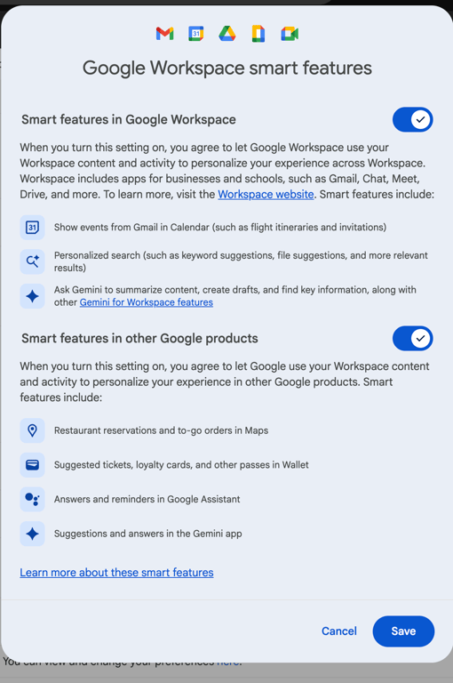 Hier scheitern die meisten Anleitungen. Google trennt die Verarbeitung innerhalb von Gmail von der übergreifenden Nutzung in anderen Produkten.