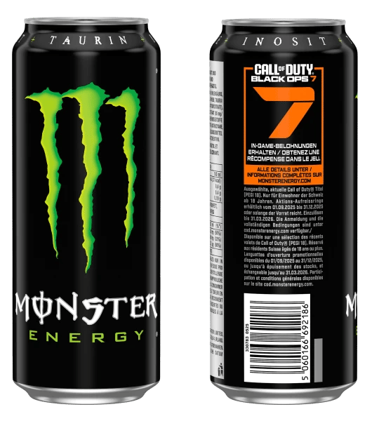 Nicht jede Sorte von Monster Energy ist automatisch Teil der Aktion. Du musst gezielt nach Dosen suchen, die das Call of Duty: Black Ops 7-Branding deutlich sichtbar auf der Seite tragen.