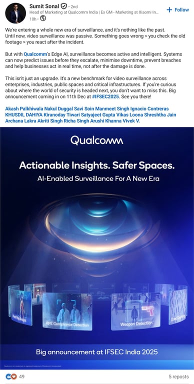 - Qualcomm (via LI) pusht zeitgleich "Active AI" für Überwachungssysteme. Das bedeutet: Noch mehr Kameras, die noch mehr Speicher und Rechenleistung direkt am Gerät ("Edge AI") benötigen. Jede "intelligente" Überwachungskamera konkurriert nun indirekt mit deinem Gaming-PC um Silizium.